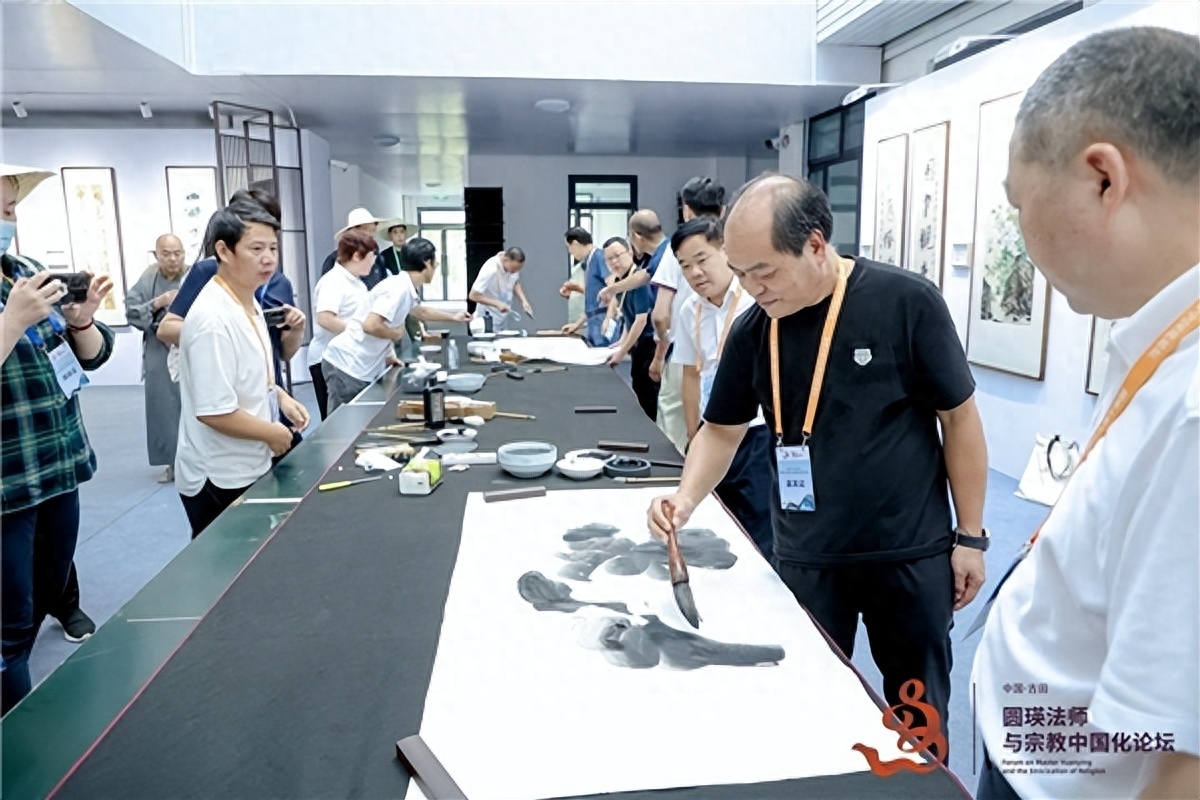 26日下午同时进行的还有坐落于古田·天宫岭驿站的“复兴之路·圆瑛之光”书画展暨书画家笔会。此次书画笔会得到上海圆明讲堂赠送的圆瑛墨宝160件,共展出书画作品163件,细品这些紧扣主题的书画作品,或浓墨重彩力透纸背,或枯笔飞白干裂秋风,或渴润有致不染凡尘,从中可以看出作者创作时皆怀恭敬之心,借助笔墨表达各自的审美意境。在欣赏大师书画作品的同时,也以文会友,通过笔会的文化活动,加深了与会各地友人的交流和互动。