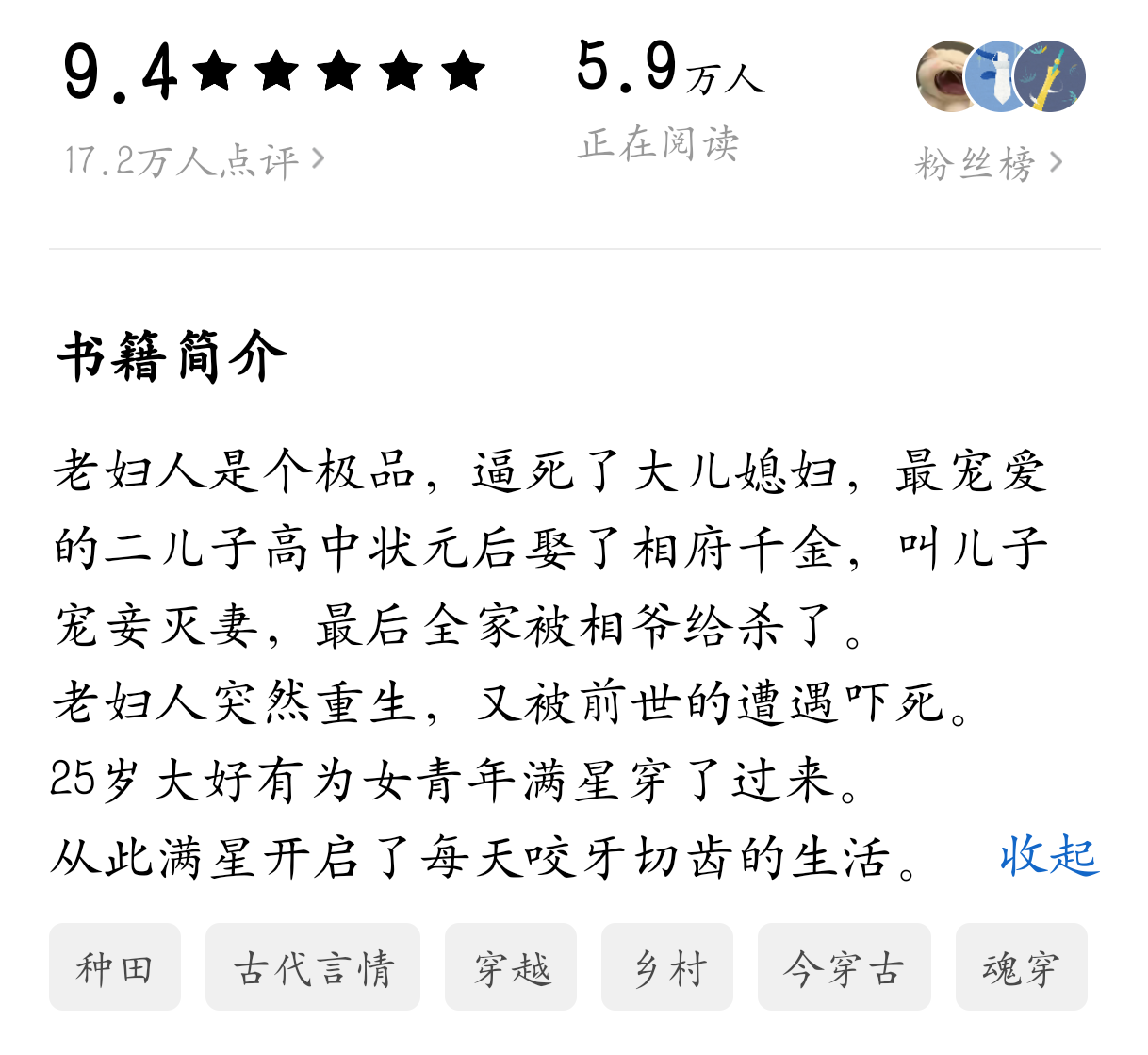 另一个槽点大概是从头开始就出现在回忆里的主角那英年早逝的丈夫了,文中一直以“老秀才”称呼他,我就一直脑补成一个七老八十的形象结果最后实际人家就是个长得很不错的青年人好吗……怎么老了!诈骗!