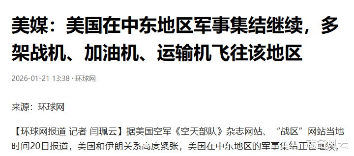 据环球网1月21日的报道称,美军正在向伊朗周边集结兵力,从英国莱肯希思基地起飞的至少12架F-15E战斗机,已经抵达了美军在中东的基地,另外还有多架运输机和加油机,还有“林肯”号航母,正在向中东地区集结。