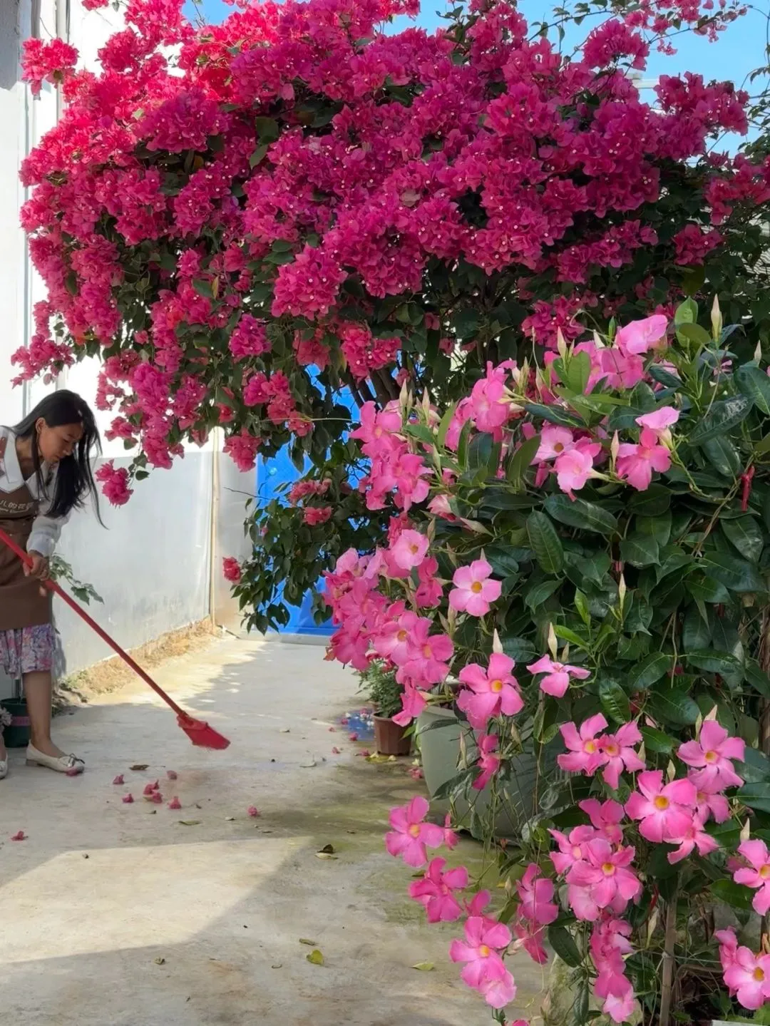 薰衣草在微风中轻轻摇曳,散发着迷人的紫色芬芳;三角梅热烈地绽放着,吸引蝴蝶和蜜蜂在花间翩翩起舞;而那些不知名的小花,也在角落里默默绽放,为小院增添了几分意外的惊喜。