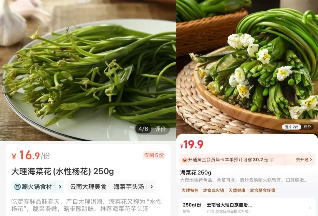目前多个生鲜平台的海菜花并非全国门店均有售卖,仅在部分地区上架。比如盒马云南门店的海菜花250g售价为16.9元,朴朴超市福建地区250g的海菜花定价19.9元,其单价(约34—40元/斤)远超大白菜、生菜等常规蔬菜3—5元/斤的市场价。