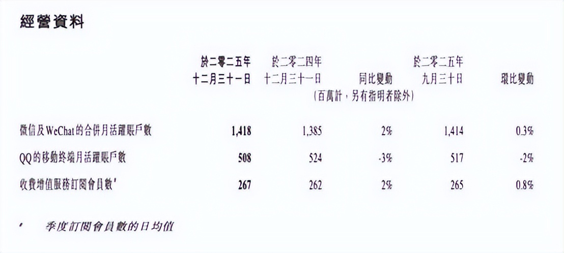 微信及WeChat合并月活跃账户数达14.18亿。