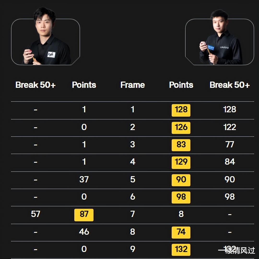 首阶段九局比赛,他打出三杆过百,四杆50+,几乎没有给对手留下任何机会。