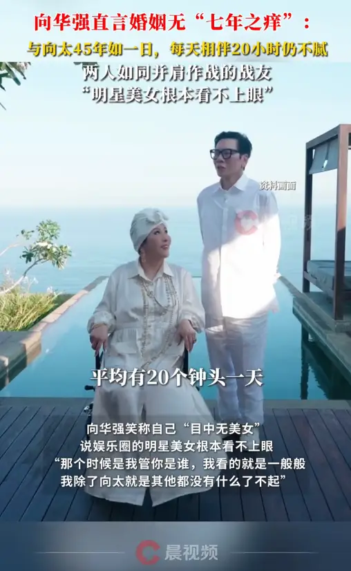 娱乐圈诱惑丛生,两人能守住初心,离不开向太清醒的经营智慧与清晰的底线规则。早年间,向太就给向华强立下三条铁律:不准碰女明星、在外应酬必须做好防护、绝不允许搞出私生子。她从不靠情绪捆绑对方,反而用务实方式守住婚姻边界,甚至会在向华强出差前主动递上防护用品,直言“要玩就聪明点,别让我知道”。而向华强也始终恪守约定,更坦言自己的婚姻观深受母亲影响,见过母亲的悲惨命运后,早已发誓绝不搞婚外情,“有这么好的伴侣,何必折腾”。
