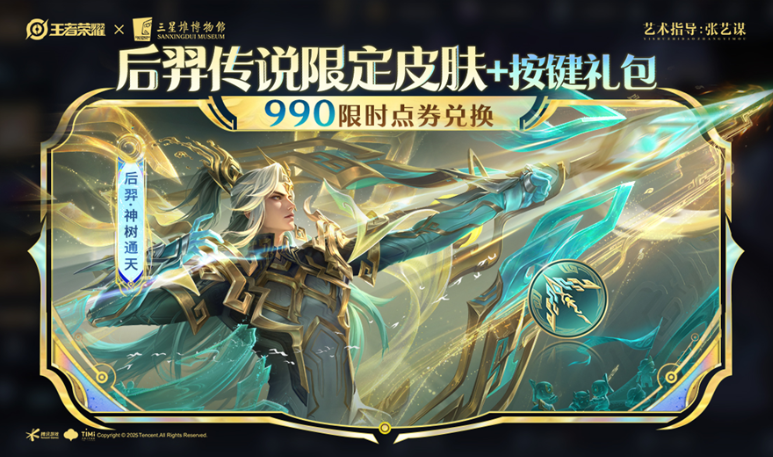 王者荣耀此次三星堆皮肤,一共是有四款,其中女娲的三星堆史诗,在15号当天就能直接从宝箱中领取,从特效来看,还是不输给补天传说限定的哈。另外,王者荣耀还官宣了25号登录兑换的后羿传说限定,也就是神树通天。玩家们可以花990限时点券兑换,也可以用178个皮肤碎片入手哈,同时还有个性按键,也是可以直接拿到手的哦。不得不说,王者荣耀去年的桑启传说限定,今年后羿的神树通天,要是之后每年周年庆的时候,都能送一款传说该多好啊。
