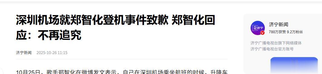 【1】济宁新闻 2025-10-26 深圳机场就郑智化登机事件致歉 郑智化回应:不再追究