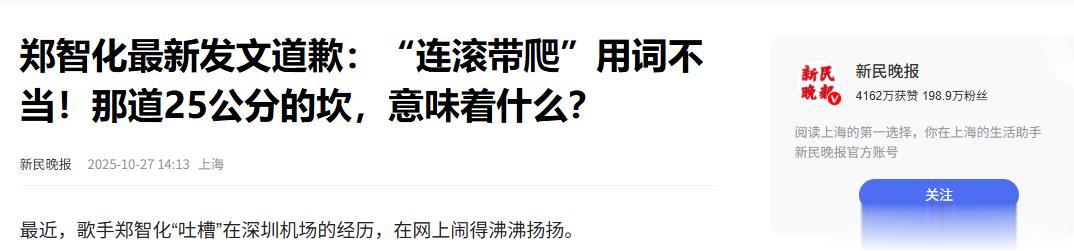 【2】新民晚报 2025-10-2 郑智化最新发文道歉:“连滚带爬”用词不当!那道25公分的坎,意味着什么?