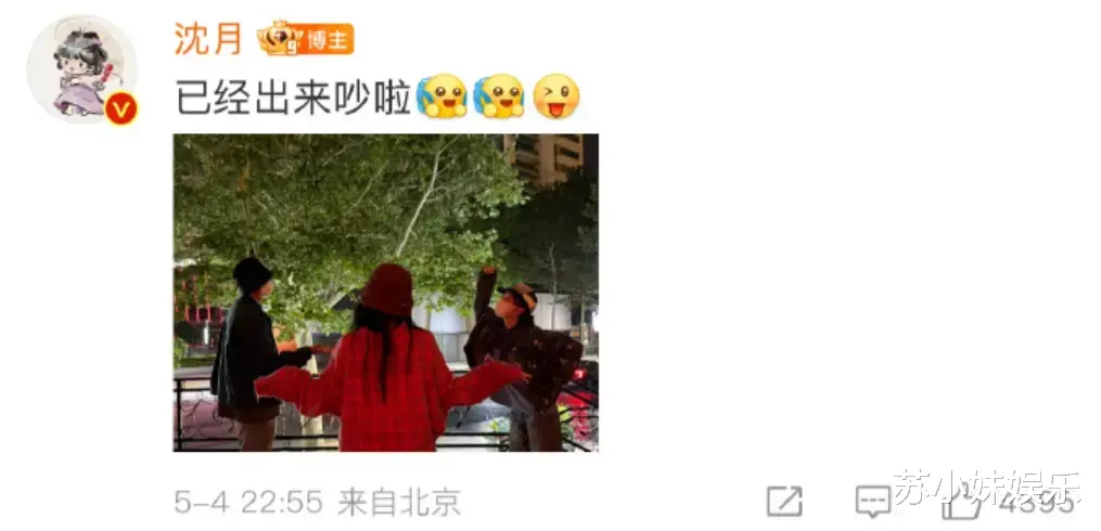 5月5日,演员沈月通过某社交平台软件发动态称“看在御妖国这么好玩的份上,今天放过王权弘业一天”,还吆喝大家一起去小院集合。小苏一看,这就不是人与剧中人的戏外趣味互动吗?