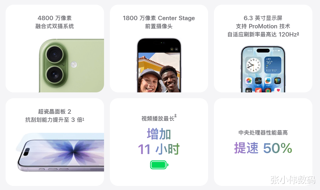 虽然外观上和上代 iPhone 16 标准版是一样的(除了配色、大小),但直接上了和 Pro 系列同款的屏幕,一点也没有阉割。