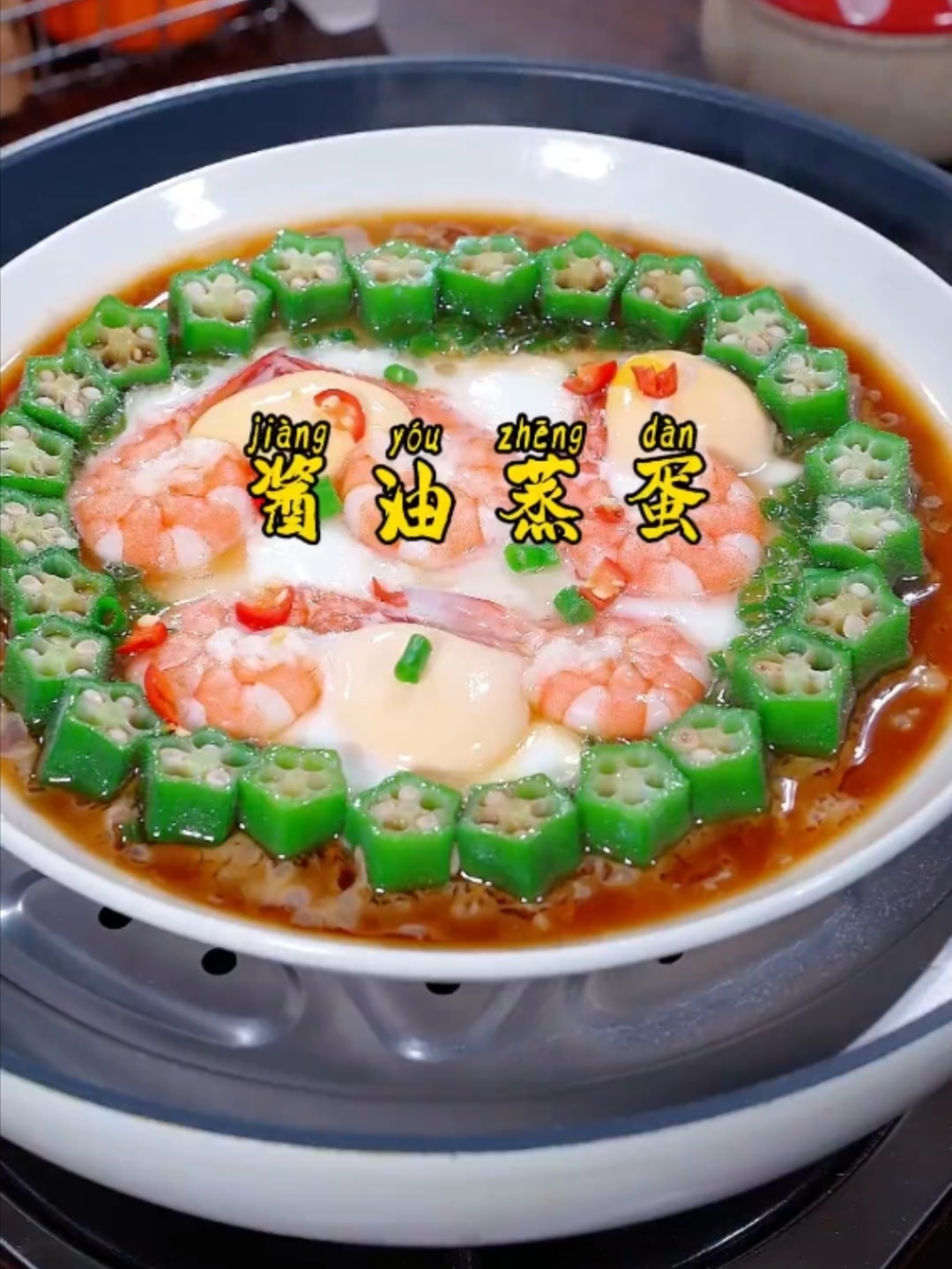 需要食材:鸡蛋,秋葵和虾仁,还有葱花。