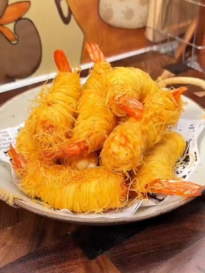 ③起锅烧油,五成油温放入锅中炸,期间记得要开小火,刚下锅的时候不要动它,防止面包丝散开,等待定时再适当翻动,让它受热均匀,炸到金黄酥脆即可捞出装盘了。