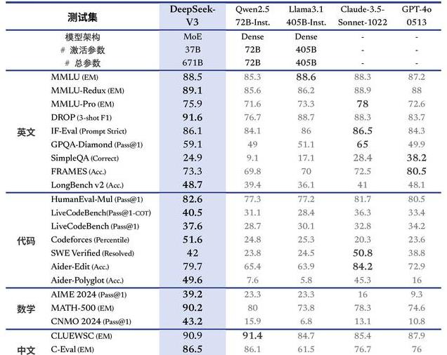 同日杭州深度求索人工智能公司,公布了deepseekV3开源大语言模型。