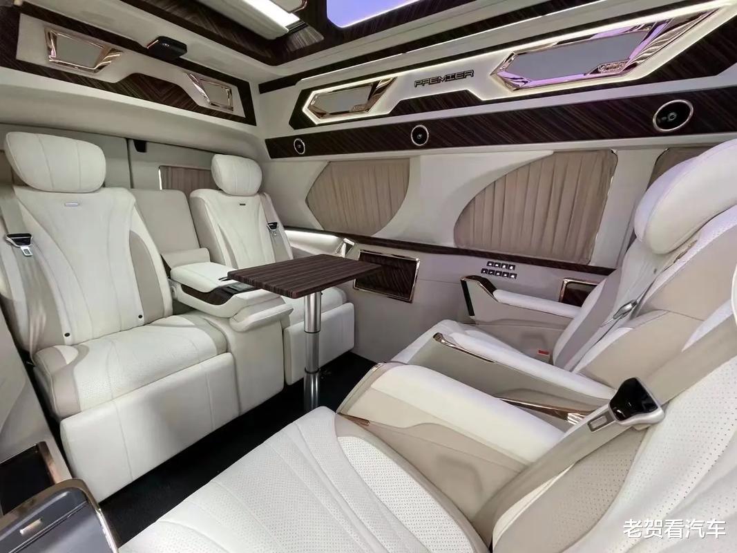 车内二排配备定制航空座椅,支持通风、加热、按摩及零重力模式,搭配可180度放平的三排座椅,瞬间化身移动休息舱。半隔断设计的前后舱配备升降液晶电视与立体环绕音响,配合可调色氛围顶灯,商务洽谈或休憩娱乐皆能无缝切换。细节上,隐藏式酒柜、车载冰箱及无线充电等配置,进一步诠释了“移动行宫”的精致感。