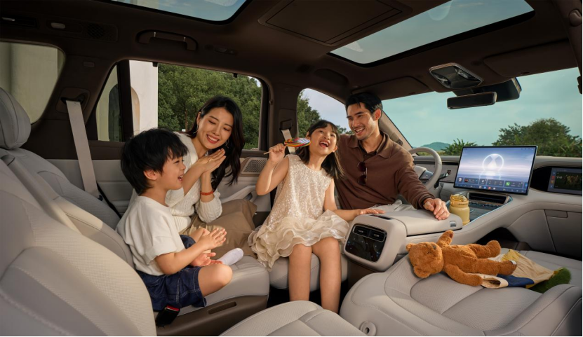 坐进车内,气氛立刻换成了“豪华剧场”。冰箱、彩电、大沙发一样不少,副驾零重力座椅、后排17.3英寸娱乐屏、双层三开门冰箱都配齐。最打动人的,是座椅的左右主动支撑,拐弯时自动包裹乘客,让人有被“接住”的安全感。比亚迪很清楚,买这种车的人看重的是体验,而不仅是数据。