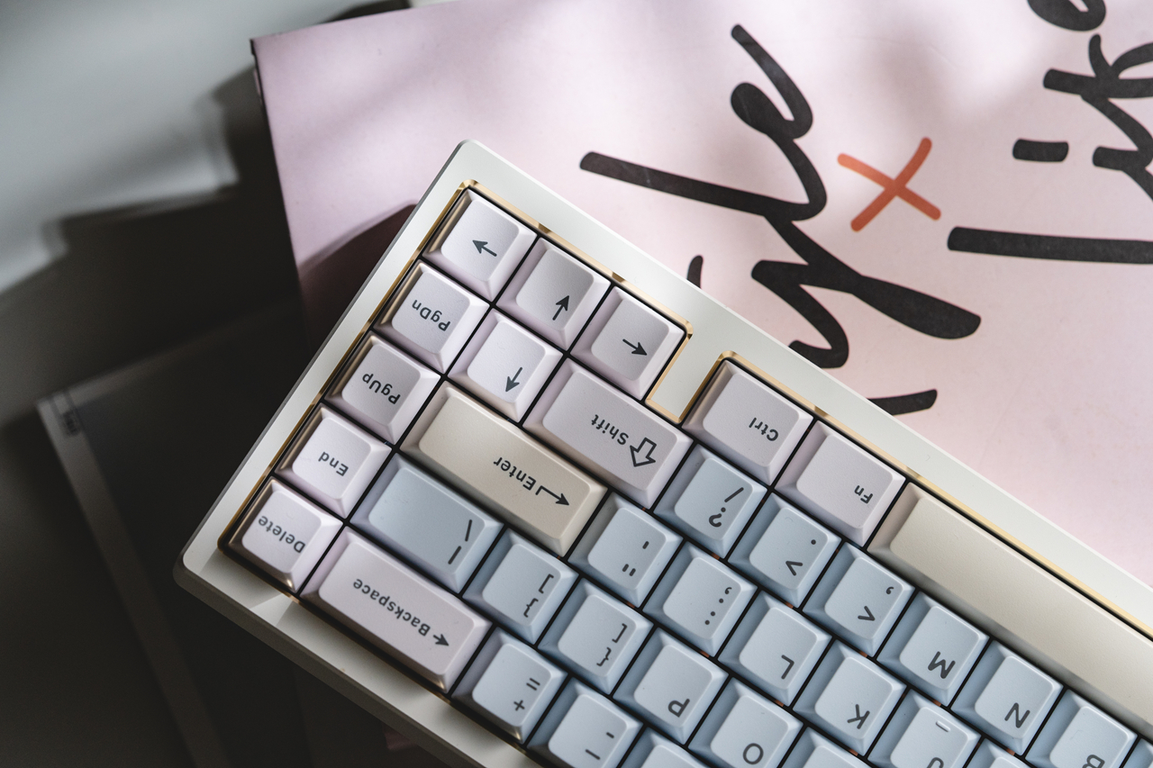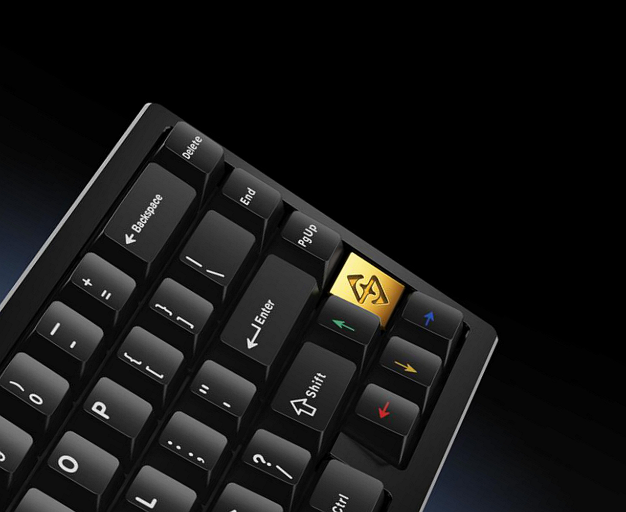 当友商用“喷砂阳极”作为高端标配,ZEN65直接祭出客制化圈极少涉足的电泳涂层+二次高光倒角组合。金色倒角如一道微缩天际线,在铝原色外壳上切割出若隐若现的光轨,这种需要五道精修工序要承受60%报废风险的工艺,通常只出现在千元以上的限量款键盘上。