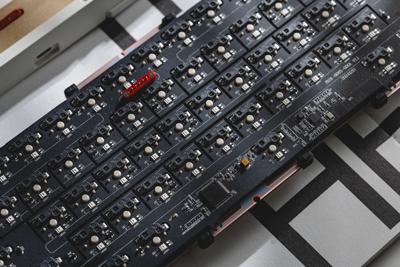 在保持17.9mm行业最低前高(不含脚贴)的前提下,ZEN65硬是塞进两块3000mAh电池,实现了关RGB灯续航30天,开灯可狂飙7天的惊人续航,这个数据甚至碾压许多全尺寸键盘。更绝妙的是,其FR4白底灰油PCB让RGB灯效呈现出油画般的浓郁质感,黑色版本在暗光环境下犹如一块悬浮的发光玄武岩,更值得推荐购买。