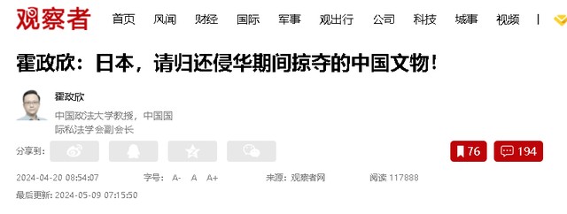 这件文物本应在中国的博物馆中,供国人欣赏和研究,却被日本当作自己的“战利品”展示。