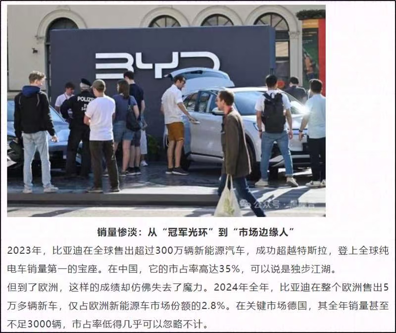 去年,网上仍不乏有媒体报道比亚迪海外销量不理想,认为“比亚迪在国内的销量佳绩在欧洲失去了魔力。与之形成鲜明对比的是,特斯拉依旧牢牢占据欧洲纯电车第一的位置,大众、宝马、奔驰等本土品牌也依靠强大的渠道与用户基础维持稳定份额。而比亚迪,不仅没能打开市场,甚至没能建立起基本的品牌认知。”