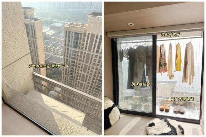 4)利用空调外机平台晾晒衣服,只需要安装上防护网+不锈钢垫板,就可以将这些鸡肋的空间利用起来。