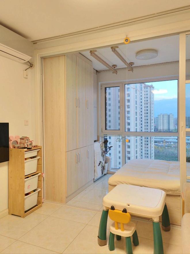 网友@桃小炽cc当初因为预算不足,就买下了一套一居室住宅,但将阳台改成卧室后,却丝毫不影响一家四口居住。