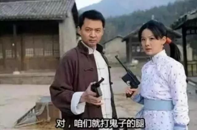 女主角拿着武器劫持了一位日本军官,但是这个画面怎么看怎么怪异,想想如果在现实中,那有一位女生穿着高跟鞋和皮衣,闭上眼睛都能知道她的下场