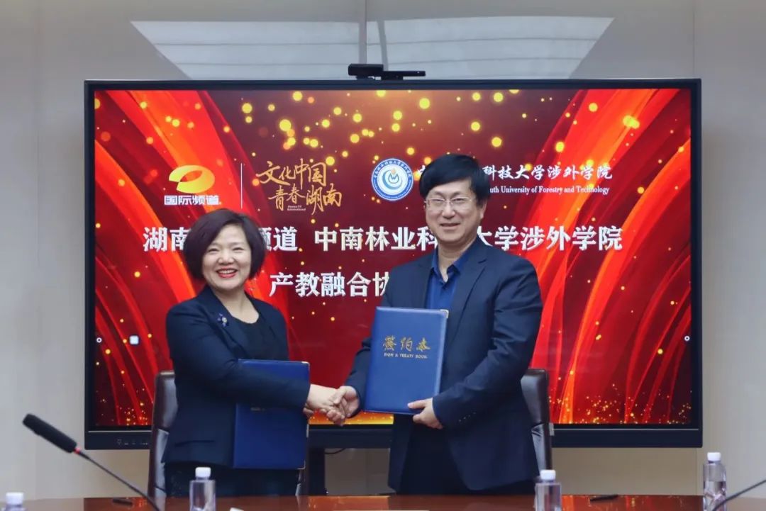 2024年12月4日下午,湖南广播电视台国际频道与中南林业科技大学涉外学院隆重举行产教融合(校企合作)签约仪式。