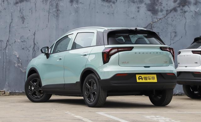 车身侧面显敦实,高配版配双拼色,避免单调。几何E全系标配205/60 R16轮毂,同级中较为罕见。
