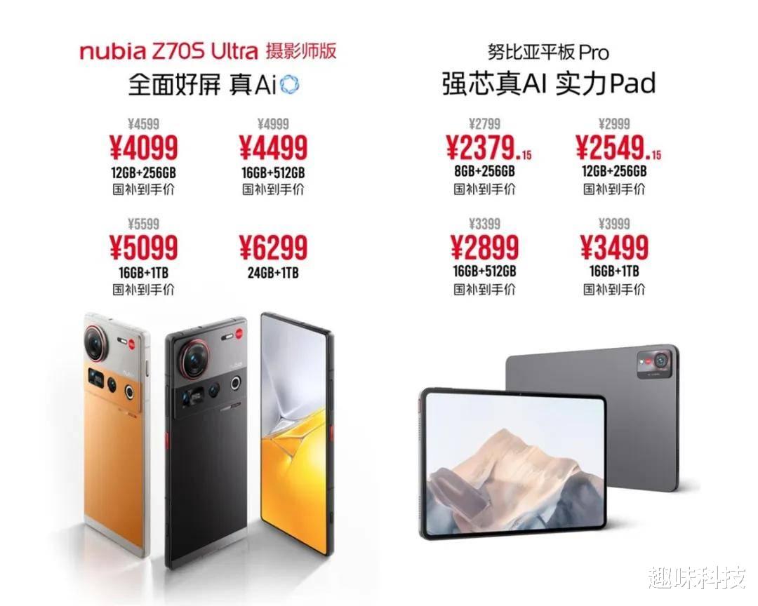 即日起,努比亚Z70S Ultra摄影师版在中兴商城、京东、天猫、抖音、拼多多、顺电、得物、唯品会、快手、小红书、视频号及各大线上线下合作渠道正式开售,新机拥有暮影、熔金两款配色,国补到手价4099元起;专业摄影套装售价899元。努比亚平板 Pro即日开启预售,京东先人一步现货发售,5月6日全渠道正式开售,国补到手价2379.15元起。