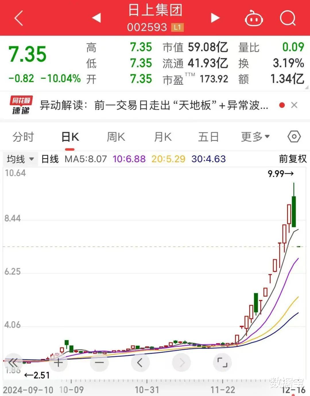 多只热门题材股出现跳水跌停情况。日上集团继上周五上演“天地板”之后,今日一字跌停,跌停板封单超95万手。