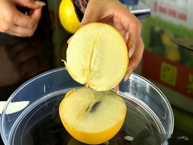 黄晶果个大肉厚、口感独特,像冰淇淋般绵软清甜,市场反响极佳。