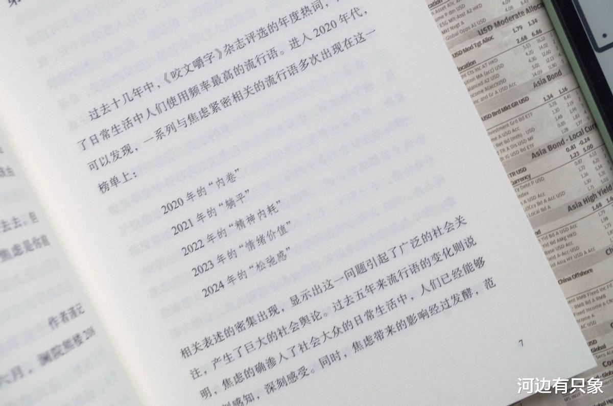 书中也提供了一个非常简单的思路,总结起来就是认清自我,有的放矢——虽然没什么实际的意义。但是这本书的最有趣的地方不在于解决上,毕竟这个问题很多书都在说,实在没有新意。可是它有趣的地方就是从“五和大神”“海淀妈妈”“巨婴”、高校青椒、骑手和网约车司机等社会群里来告诉读者,社会在给大家制造焦虑,只有明白了这个点,才明白解决焦虑的核心,真正减少心中的焦虑。