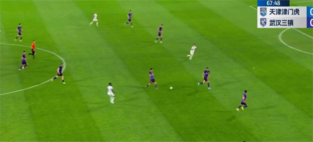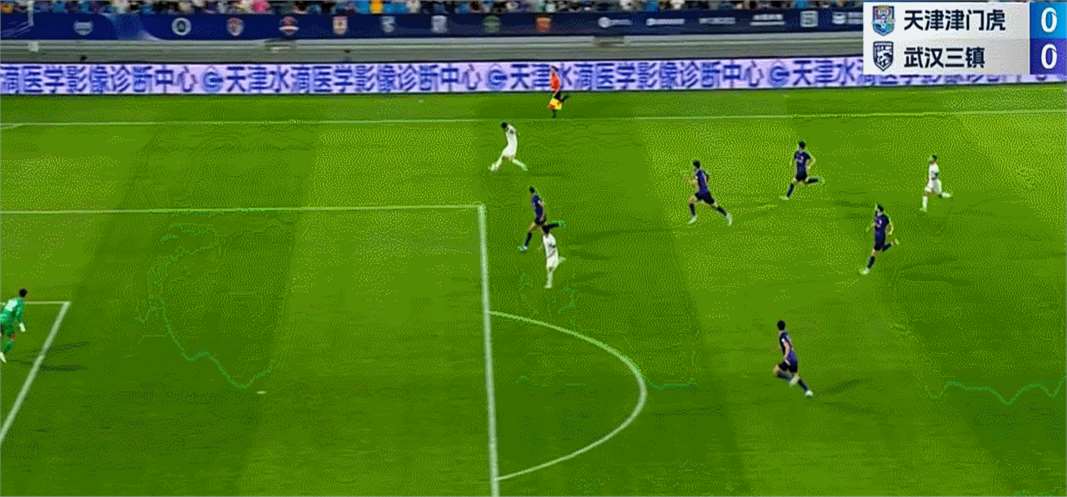 第65分钟,天津津门虎发动快速反击,苏缘杰带球长途奔袭推进至禁区弧,拔脚远射。皮球势大力沉,但刘殿座注意力非常集中,单掌将球托出球门横梁,展现了出色的守门反应能力。第68分钟,陶强龙接应队友直塞,形成单刀球机会,但射门时越位在先,进球无效。这一判罚引起了武汉三镇球员的不满,但他们很快调整情绪,继续投入到比赛中。
