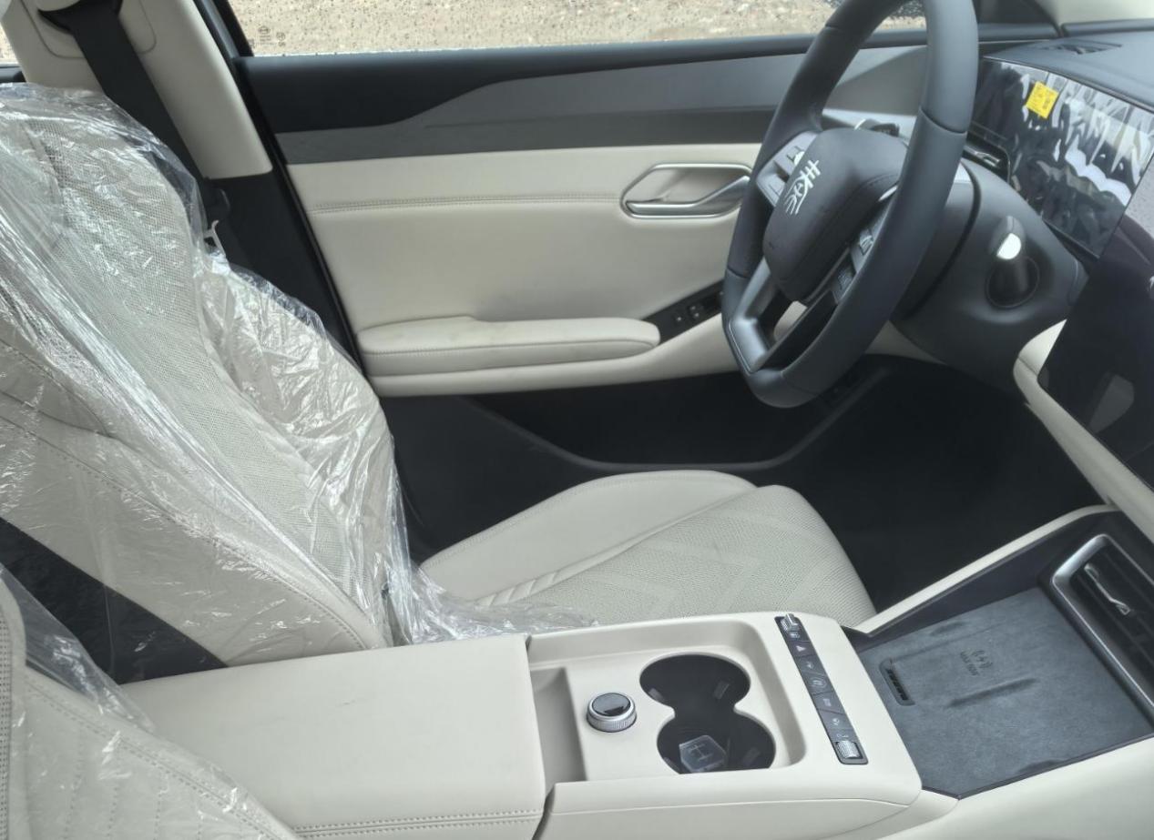 进入车内,你会发现秦L EV的内饰设计同样充满科技感。15.6英寸的悬浮式中控大屏是整个内饰的焦点,内置DiLink 100智能网联系统,功能丰富,操作流畅。8.8英寸的全液晶仪表盘显示清晰,信息丰富。此外,HUD抬头显示、电子怀挡、手机无线充电等配置也一应俱全,营造出一种满满的科技氛围。值得一提的是,秦L EV还配备了车载冰箱,这在同级别车型中并不常见,对于夏天出行来说无疑是一个加分项。用料方面,秦L EV也展现了应有的水准,大面积的软质材料包裹,配合精致的缝线和装饰,提升了车内的质感。