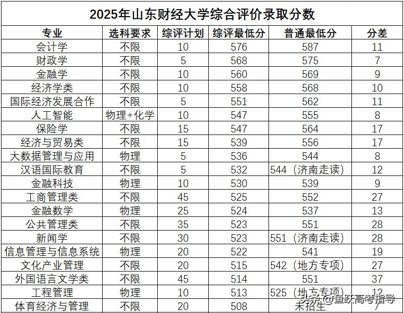 山东财经大学公布了2025年的综合评价招生录取分数。