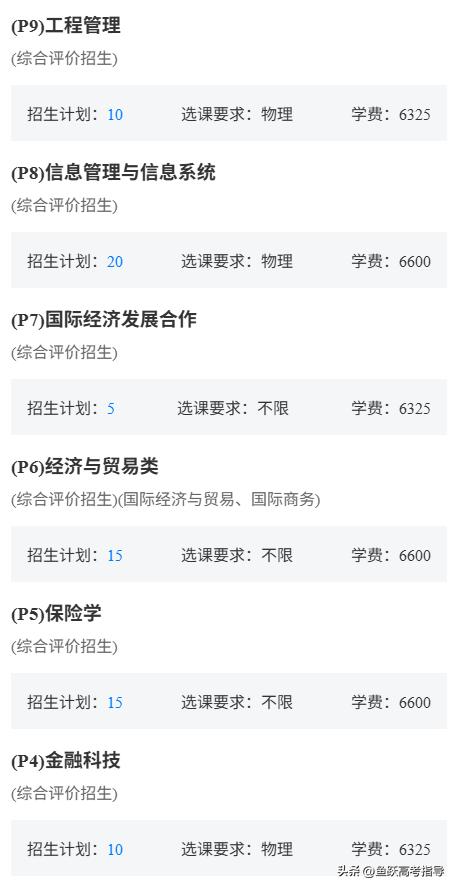 1、由于学校是财经类高校的特性,其大部分专业的选科均为不限。这一特点也在综合评价中体现:其20个招生专业里面仅有5个限制了选科,其他的均为不限。