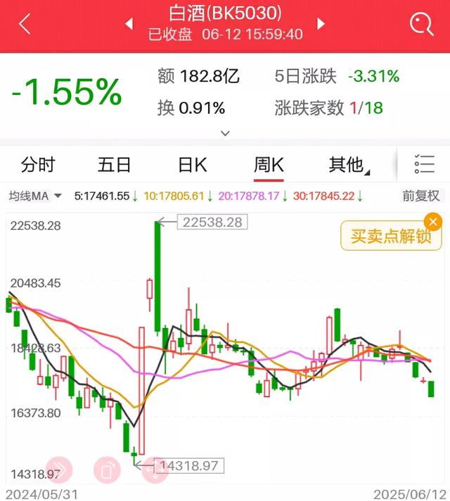 6月12日A股收盘,白酒板块再次遭遇重创,整个板块几乎全军覆没,唯独皇台酒业一家"孤军奋战"收红。行业龙头贵州茅台和五粮液股价日线双双跌破关键支撑位,跌幅均超过1%,其中五粮液已经连续下跌5周,茅台也连跌4周,颓势难挡。与此同时,茅台白酒批发价持续走低,市场抛售白酒股票。曾经风光无限的白酒行业,难道真的已经沦为夕阳产业?近期岩石股份因营收不足3亿元被ST,国内禁酒令再度收紧,加上频繁曝出的工作时间饮酒致死事件,都给整个行业蒙上阴影。种种迹象表明,酿酒板块股票的下跌可能只是行业寒冬的开始。
