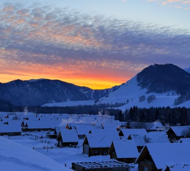 位于新疆阿勒泰地区布尔津县的禾木村,是一个以自然景观与图瓦人文化为特点的村落。村落被群山环抱,原木垒成的尖顶木屋错落分布