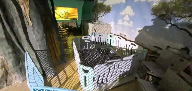 随后在另一位工作人员的指引下,来到室内馆,里面光线不是很好,有鹦鹉、蟒蛇等,在一个角落,记者看到有一个小笼子旁边铺着厚厚的棉被,这就是小狮子的宿舍,而小狮子在小笼子里睡觉,什么也没看到。