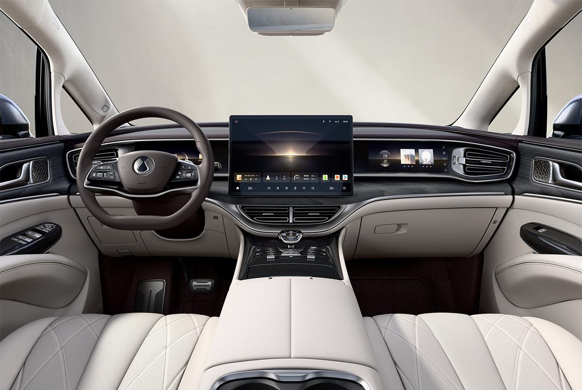 进入车内,最吸睛的莫过于那块新增的副驾屏幕。加上这块屏幕,腾势D9实现了10屏互联,这在同级车型中确实不多见。方向盘后也增加了智驾系统的快捷键,操作起来更方便。此外,新车还换装了AirSPA双零重力座椅、帝瓦雷音响系统,舒适性配置拉满。第三排座椅的滑轨也进行了优化,前后调节幅度更大,空间利用率更高。