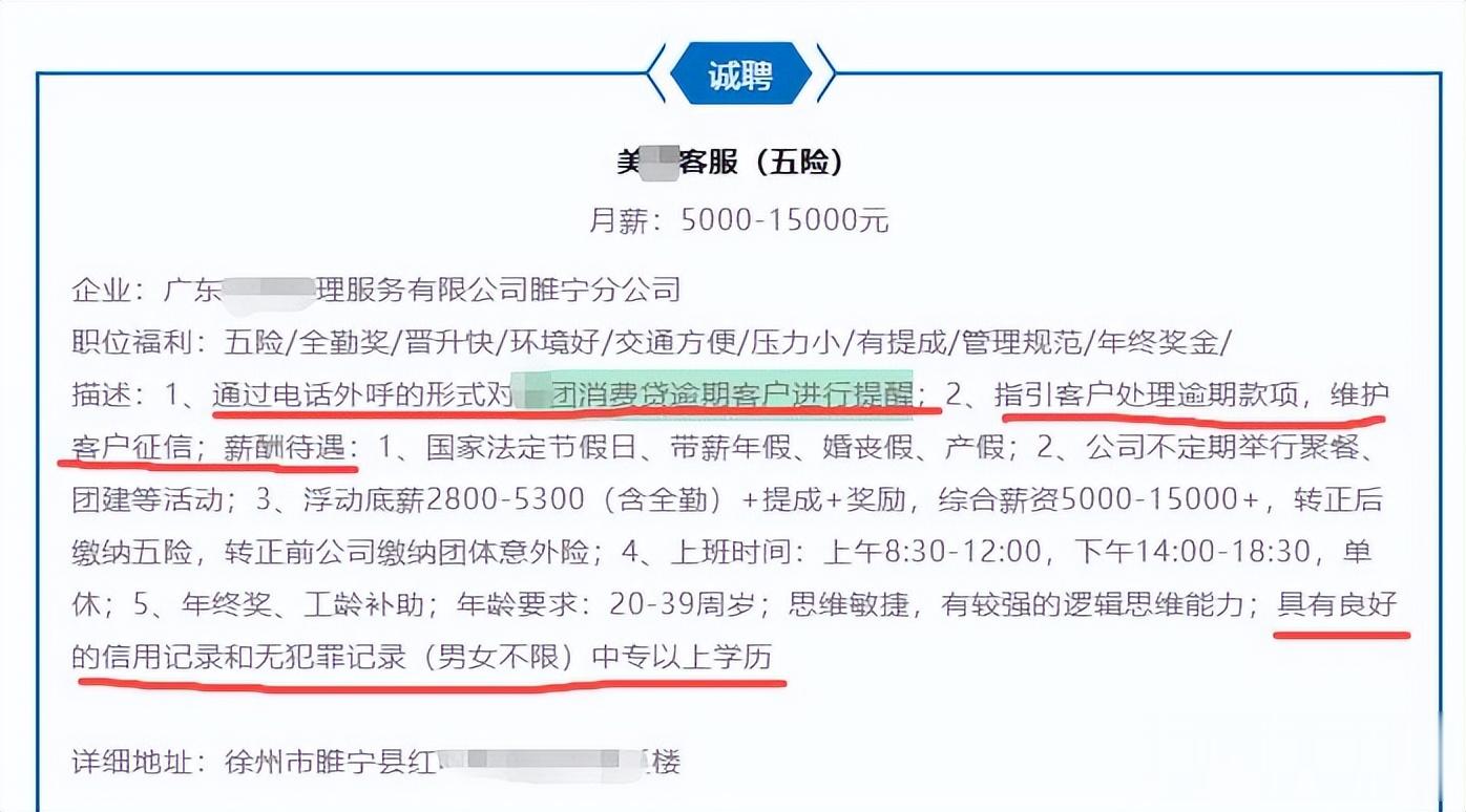 那么谁又变成新的“催收之都”呢?从招聘广告和市场调查发现,有人说江西的鹰潭,但是比较确认的是,应该是江苏徐州,尤其是下面的睢宁县,可能是全国催收公司最为集中的一个县城。根据不完全统计,公开大规模招聘员工的催收公司,就有着40-50多家。另外还有着很多工作室,他们可能接一些三包四包的业务,位置隐蔽,小作坊式的定点催收。