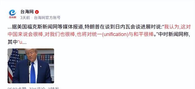 这一言论瞬间震惊了太平洋两岸,尤其是其中“统一”一词,让国际社会的目光迅速聚焦于台海地区。毕竟,台湾问题一直是中美关系中最为敏感的核心议题,特朗普此番表态,如同在平静湖面投入巨石,激起千层浪。