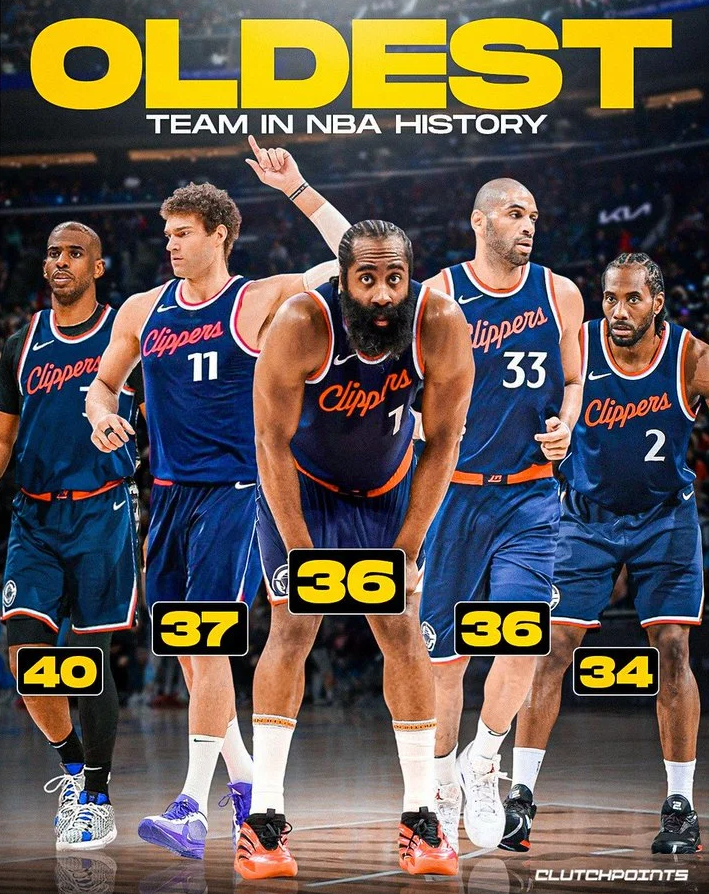 美媒ClutchPoints更新社交媒体,晒出有关快船的相关言论。 其写道:“快船正式成为NBA历史上平均年龄最大的球队,据记者Tom Haberstroh与Dan Devine的数据,快船平均年龄为33.2岁,超越了2000-01赛季的爵士。” “那个赛季的爵士表现如何?球队平均年龄32.0岁,首发平均年龄33.4岁,队内8名球员超过30岁,常规赛赢下53场,首轮即被淘汰。” “2025-26赛季的快船同样有8名球员年龄超过30岁。他们目前还有一个空缺名额,不过由于休赛期主要引进的都为老将,这个名额无法显著降低球队的平均年龄。” “上赛季我们见证了年轻的雷霆夺冠,NBA历史上最年轻的夺冠球队之一。那么明年的快船,能否上演‘反向夺冠’的奇迹呢?”