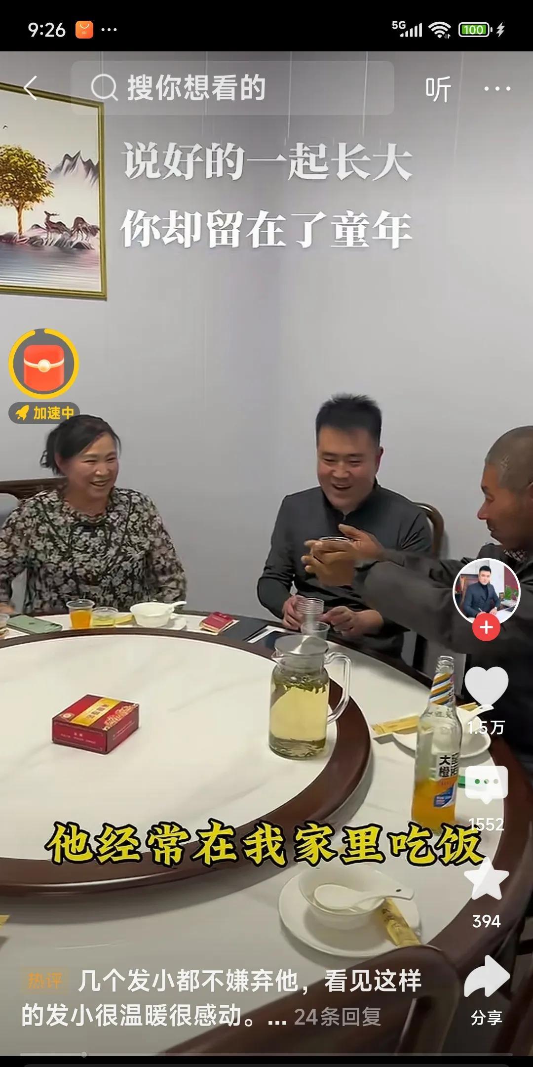 说好的一起长大,你却留在了童年,他是我的发小丑丑。今天我带着发小下馆子吃肉,他把吃剩的猪蹄给了另一个伙伴。网友说:几个发小都不嫌弃他,看见这样的发小很温暖很感动,这才叫发小。有的人说:守村人,白天痴傻无人问,夜半杖剑斩妖魔。景先生就是丑丑的贵人,有景先生在,丑丑就有了依靠。有的人说:这真是4岁的智商,这样也好。不会看透这世间残酷真相,永远活在纯真无邪中。在视频中看到了用金钱都无法衡量的东西,除了感动,剩下的就是为你点赞,大家说是这样的吗?