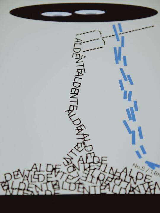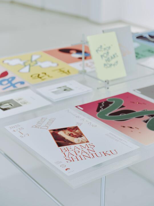 展览是两位日本当代青年设计师sato yutaka ×TADASHI UEDA 的双人展,展品包含了平面设计和出版物等,文字、图像、线条与色彩的不同组合,演绎出丰富的视觉叙事。