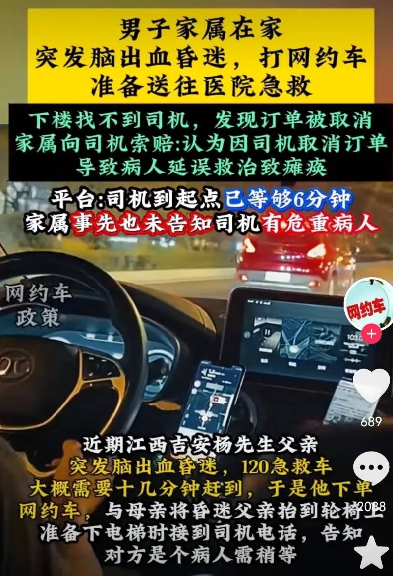明知是病人,宁可取消订单,随便平台罚款,扣分,也不敢接这趟浑水……等下路上病人出现问题,再来责怪司机,更是吃不了 ,兜着走……现实如此