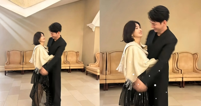 赵丽颖在飞天奖典礼上扑进他怀里啦! 当时明兰和长柏碰面, 赵颖可高兴了,一下子抱住王仁君。