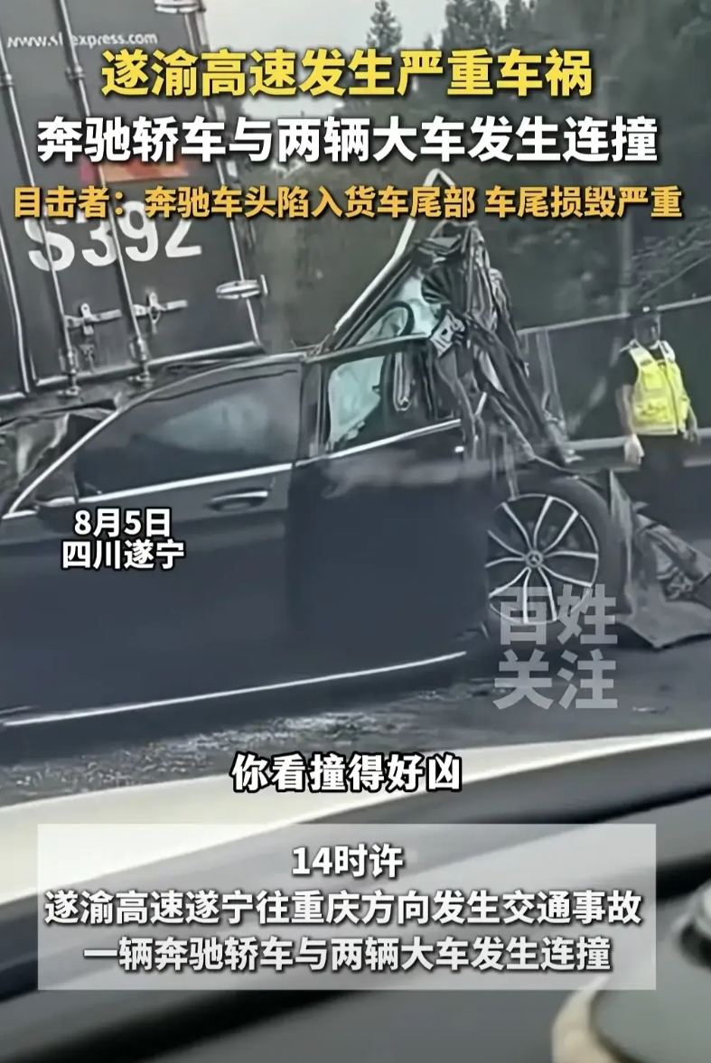 高速路上,一前一后两个大货车夹击,奔驰也是白搭。 看截图驾驶舱问题不大,后座如果