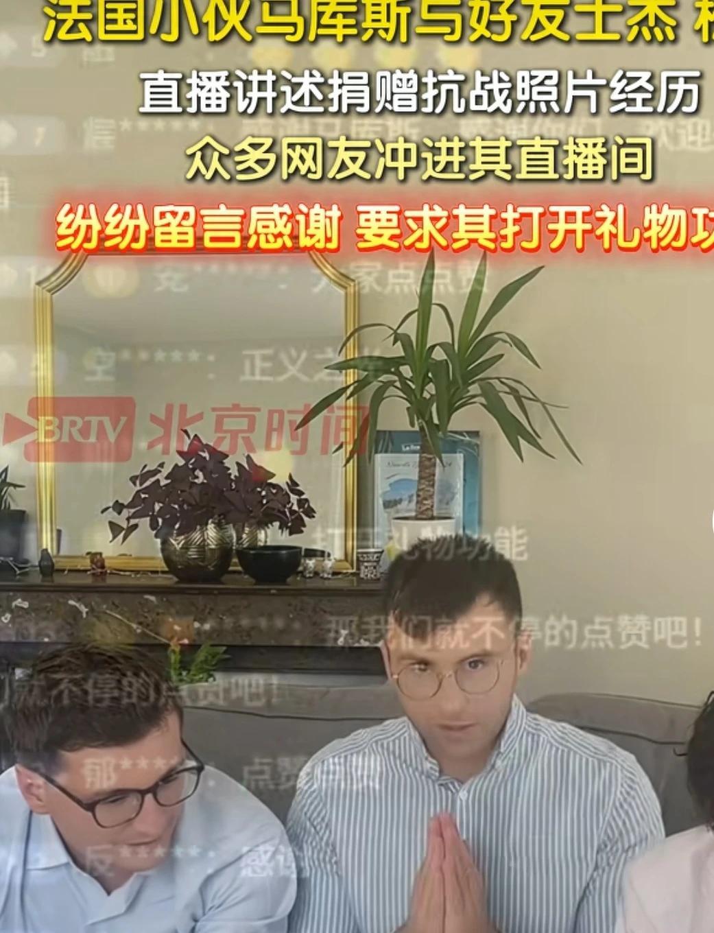 法国小伙马库斯8月4号在中国驻法大使馆正式捐赠了600多张中国人民抗日战争历史照片!照片是他外祖父1930年在中国拍摄的,是很珍贵的历史资料,今年2月马库斯和朋友携带照片到了中国并计划将照片无偿捐赠,现在经过专家鉴定照片是真实的,这有力地回击了网上的一些谣言,完成捐赠后马库斯很激动,他说外祖父临终前曾经吩咐他等到中国强大了一定要把照片捐给中国!原来不止我们盼着中华复兴,外国的正义人士也盼着中国早点强大呀! 马库斯捐赠照片也是一波三折,他也面对了很多威胁和刁难,这次心愿达成让他很高兴,他说家族都会为他感到骄傲,中方赠予青花瓷U盘做纪念,里面是所有历史照片的电子版,当晚马库斯和朋友开直播,大批中国网友冲进直播间表示感谢并要求他开礼物打赏,大家都想表示下心意,可是马库斯关闭了打赏功能,听说他马上要到中国来了,很多网友希望他和埃文能参加9月3号的抗日阅兵式,有个网友说马库斯不仅捐了照片还协助中国追回了海外流失的60多件文物,他的家族也把拍到的文物捐给了中国,这家人觉悟真高,谢谢马库斯先生和他的家族,每一个中国人都应该记着他们的义举!