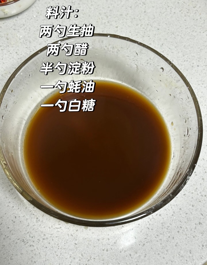 当然,主角登场前,调料的搭配也得精心准备:米醋或陈醋、生抽、白糖、盐和少许淀粉水,缺一不可。