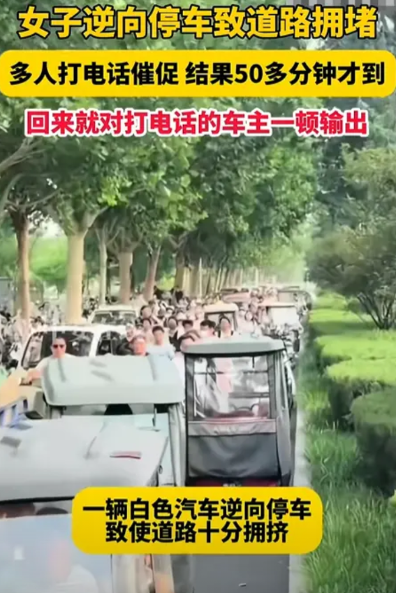 8月8日 河南安阳的街头上,一辆白色轿车逆行停在了单行道上迟迟不见移动!对面的车流已经延绵百米,路人忍无可忍拨打了轿车电话,轿车司机满口答应:“5分钟就下来”,可最终却让整条街等了她50多分钟,姗姗来迟的她结果还“委屈”上了!